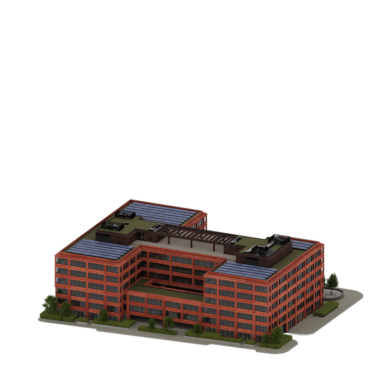 Die vom Tageslicht durchfluteten, äusserst flexibel nutzbaren Bürosegmente erlauben dank ihrer Tiefe unterschiedlichste Raumzuschnitte und Bespielungen. Der bewusst gewählte H-förmige Grundriss ermöglicht es, auf einer Geschossebene verschiedenste Organisationseinheiten rund um ein gemeinsames Zentrum anzuordnen, das hochwertigen Raum bietet für formelle und informelle Kollaboration.